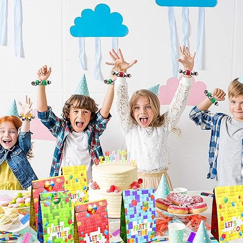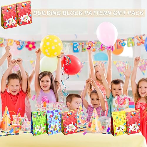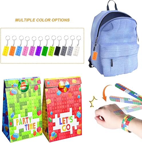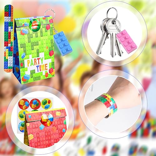 12 ensemble de sacs de fête d'anniversaire de fête de blocs de construction, cadeaux de fête pour enfants, porte-clés de blocs de construction, sac cadeau, autocollants, souvenirs d'anneau Pat