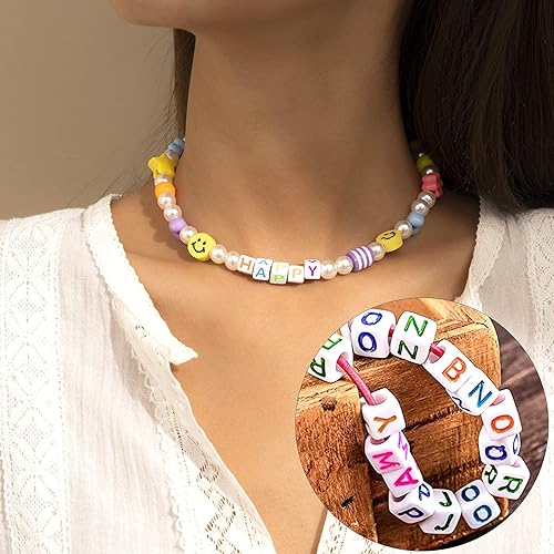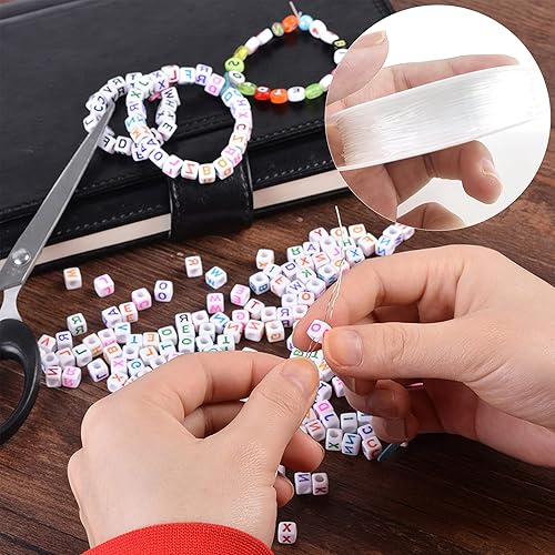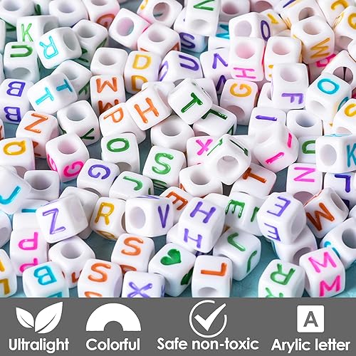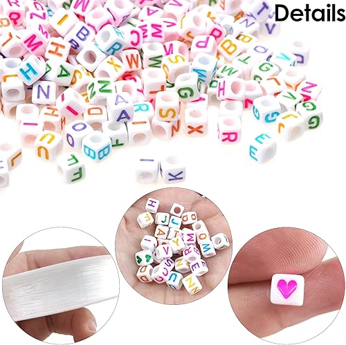 Yeerum Acrylique Alphabet Lettre Perle, Avec Boite De Rangement Et Fil Transparent Perles Acryliques De A à Z Cubes Couleur Blanc Alphabet Pour Fabrication De Bracelets Colliers Bijoux