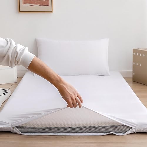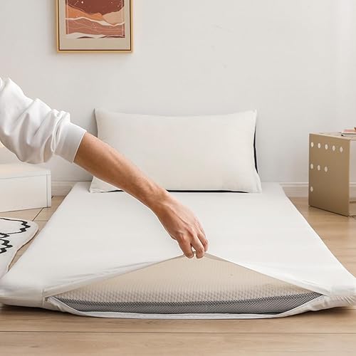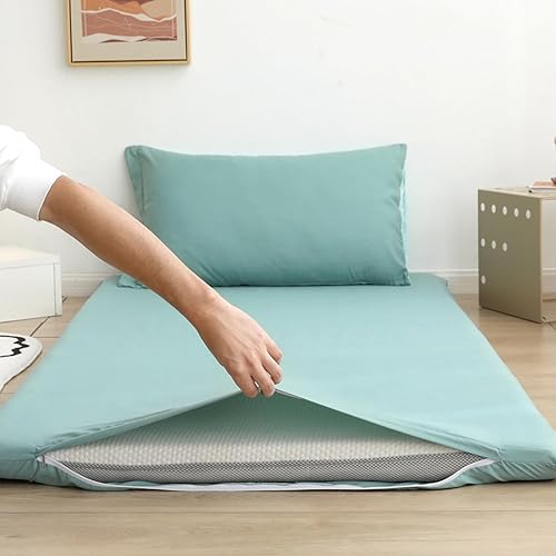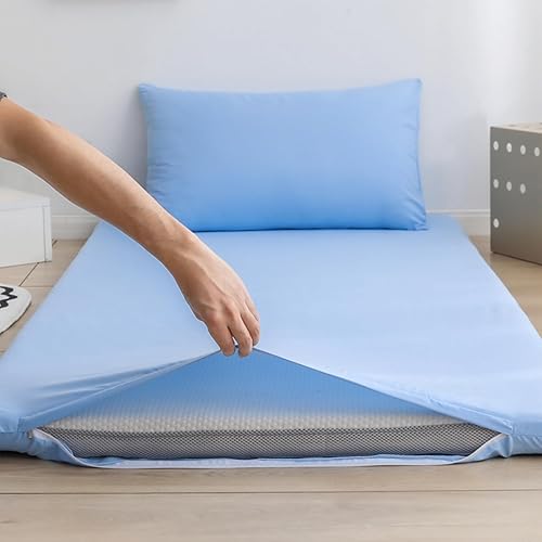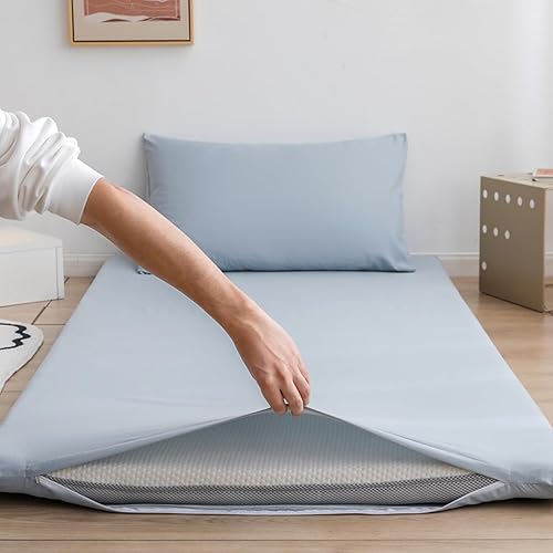 Couvre-Matelas Futon De Couleur Unie,Housse De Matelas Tatami Lavable À Glissière Pleine Grandeur,Couvre-Matelas De Sol en Coton pour La Protection Contre La Poussière,Royal Blue,King/180x200cm
