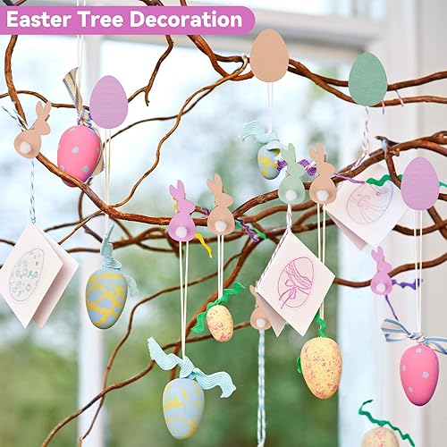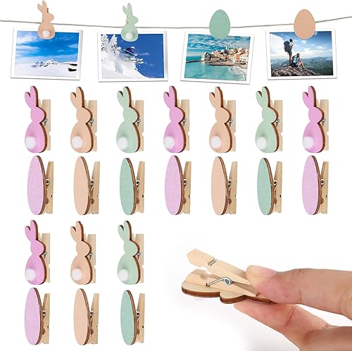 24 Pièces Pinces en Bois de Pâques, Mini Pinces à Linge en Bois avec Forme Lapin et Oeuf, Clips Photo Lapin Décorations de Pâques pour Bricolage Photo Mur Photo Snack Bag Cadeau de Pâques