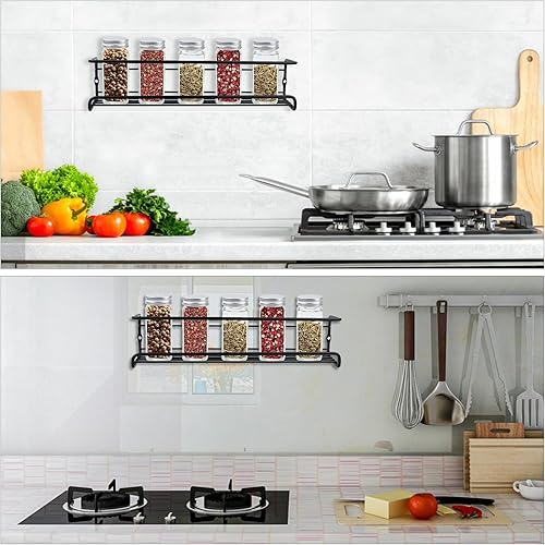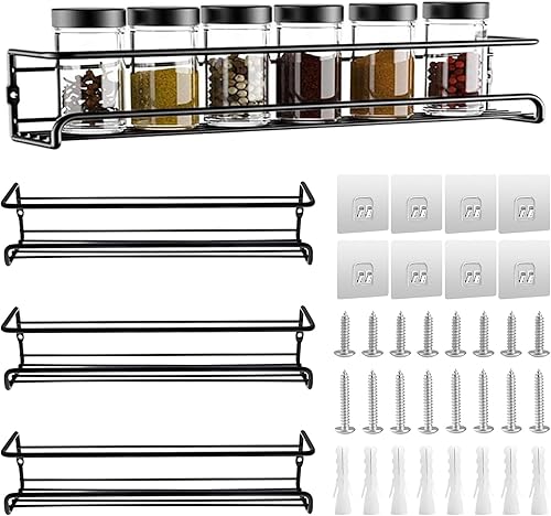 4 Pcs éTagèRes à éPices Murales,Porte-épices Murale,Porte Epices Cuisine avec Crochets Autocollants et Vis, sans Percage,pour Ranger Les Bouteilles De Cuisine, Épices, Canettes, Ustensiles de Cuisine