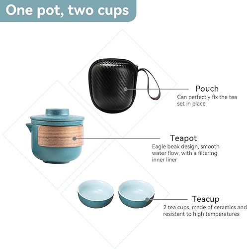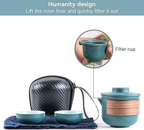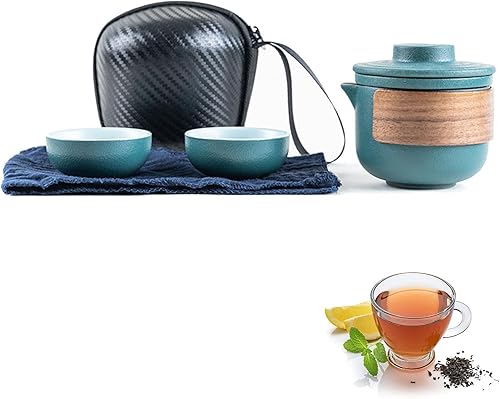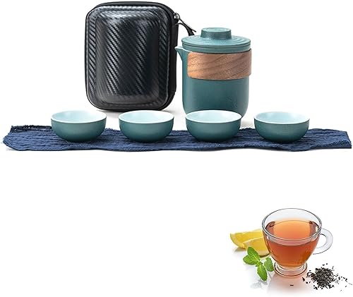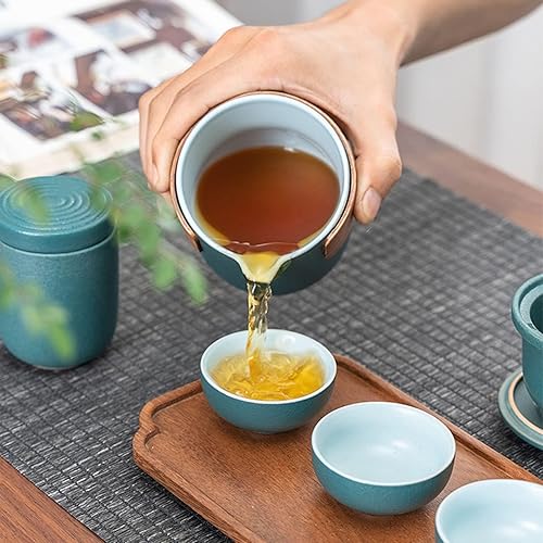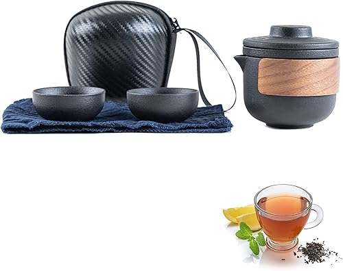 Mini Ensemble de Théière de Voyage en Céramique, Théière Chinoise Kung Fu Service à Thé de Voyage Portable Anti-brûlure Avec Infuseur à Thé Service à Thé Avec Sac Portable (Noir-4 Tasses)