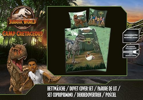Herding Parure de lit Jurassic World Camp Cretaceous, Housse de Coussin env. 80x80 cm, Housse de Couette env. 135x200 cm, avec Fermeture éclair de Marque Facile, 100% Coton, Renforcé