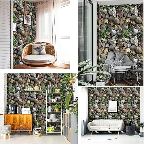 TAOGIFT Papier peint autocollant 3D en forme de fleur et pierre de roche pour cuisine, art mural, artisanat, décoration, autocollant 45 x 297,2 cm