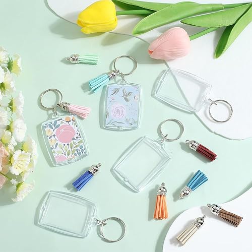SOFPLATE 50 ensemble de 25 couleurs de Porte Clés en Acrylique Cadre Photo Porte Clés en Vrac avec Pendentifs à Pompon Porte Clés Photo Rectangulaire de 2.2x1.6 pouces Ébauches D'Insertion D'Images Ki