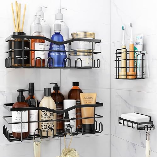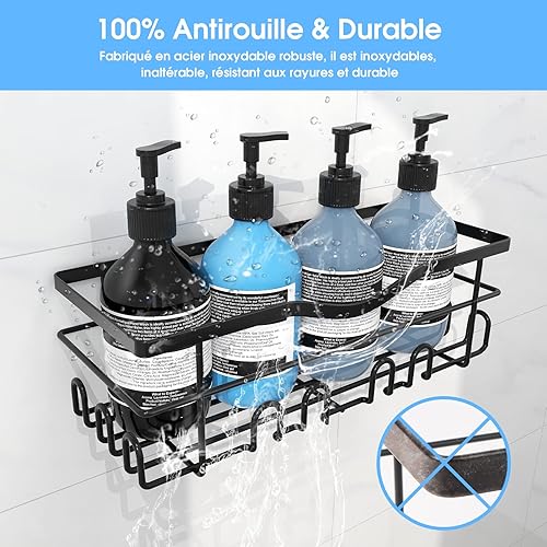 Etagere Douche Sans Percage, 4 PCS Etagere Salle de Bain Rangement et Organisation Douche, Support Savon Douche Porte Shampoing Accessoire Douche, Etagere Murale Salle de Bain Serviteur de Douche Noir