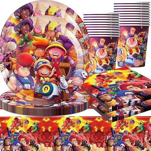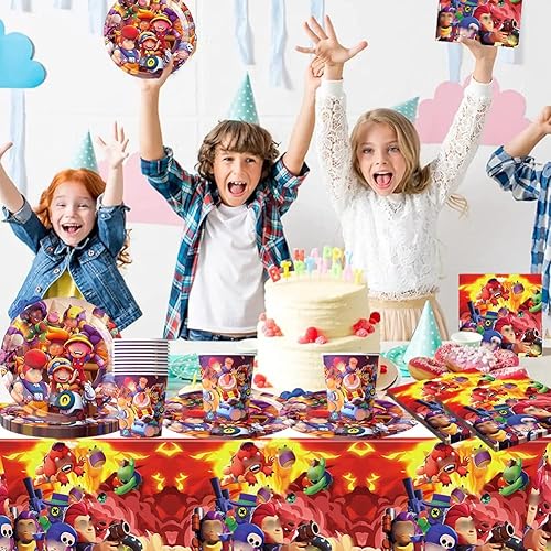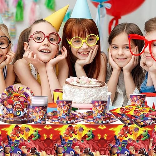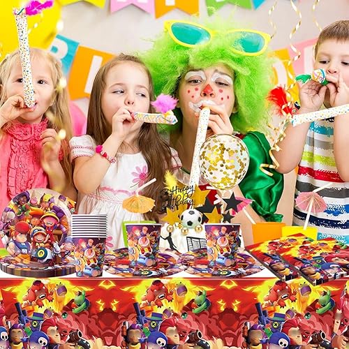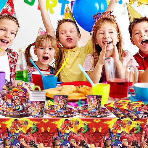 Vaisselle de Fête pour Dessins Animés, Vaisselle de Fête Jeux,Vaisselle de Personnages de Dessins Animés Stars, Fournitures de Jeux Vaisselle Set Anniversaire Assiettes Gobelets Serviettes 20 Invités