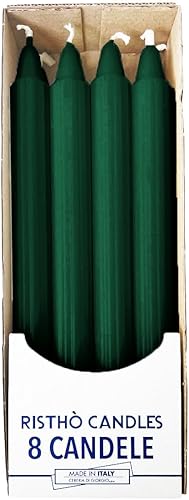 Lot de 8 bougies décoratives rainurées Doriques, couleur vert foncé, durée 8 heures, diamètre 2,2 cm, hauteur 25 cm