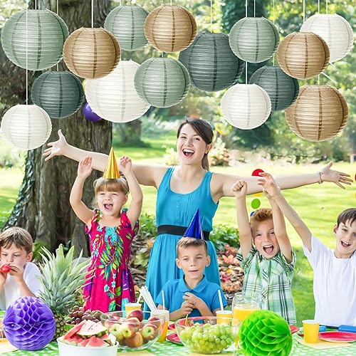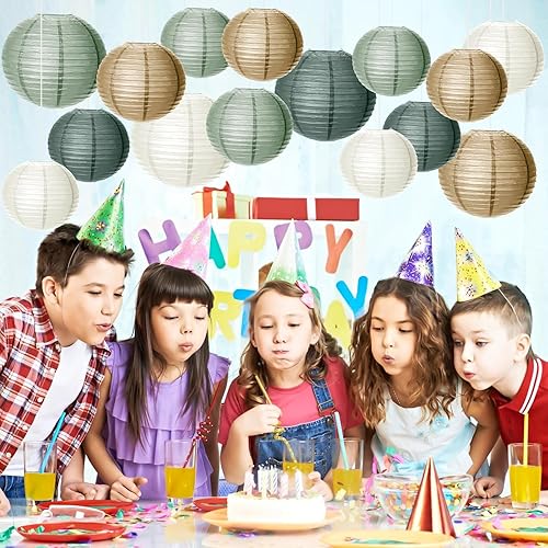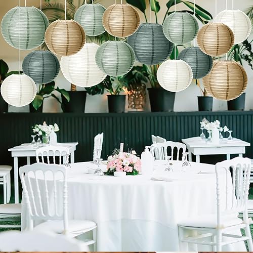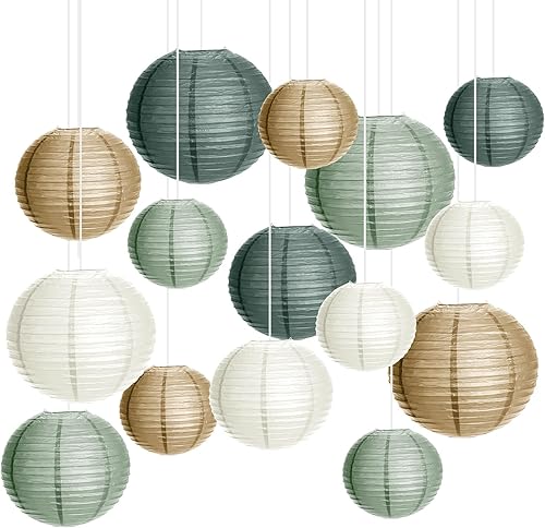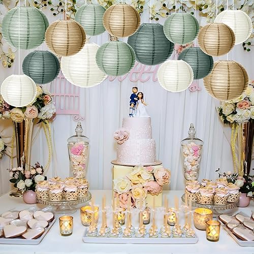 Lot de 15 lanternes en papier - Décoration de fête de mariage - Vert sauge - Décoration de fête pour jardin, fête nuptiale, fête prénatale, anniversaire, remise de diplôme, accessoires de mariage