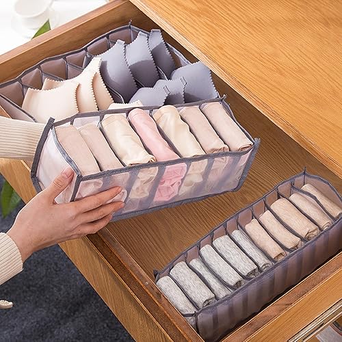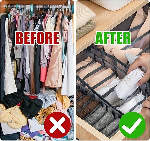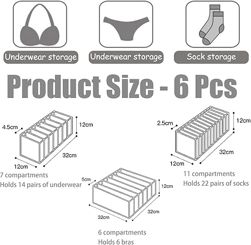 MUU 6 Pièces Organisateur Soutien Gorge,6/7/11 Grilles Organisateur Vetement Tiroir,Boite Rangement Sous Vetement,Rangement Tiroir Pliable pour Armoire pour Chaussettes T-shirts Pantalons Jupes