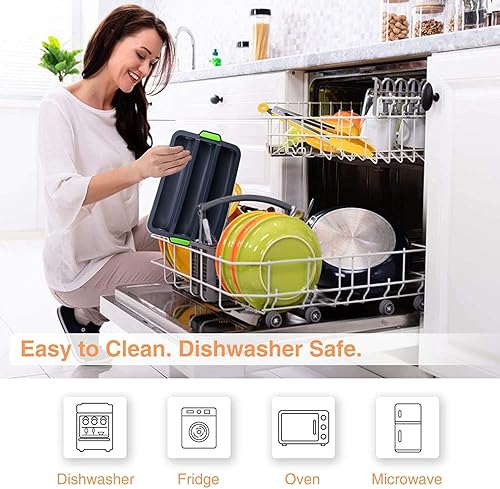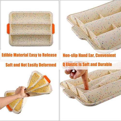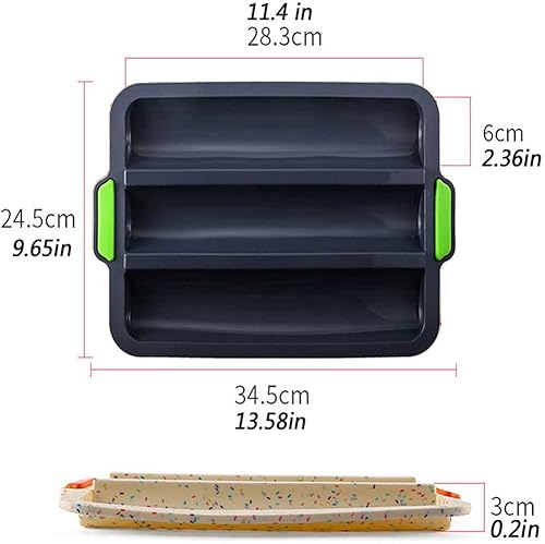 Moule a Baguette en Silicone Moule Cuisson Baguettes - Moule à Pain pour Baguette Anti-adhésif, Bâton de Pain Français Poêle à Pain pour Placer et Cuire 3 Baguettes, 34X24cm