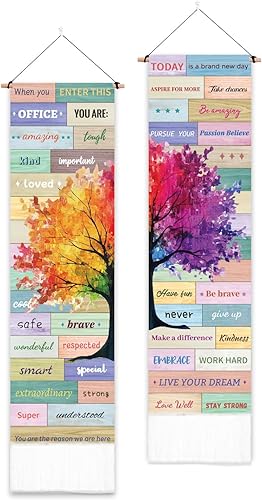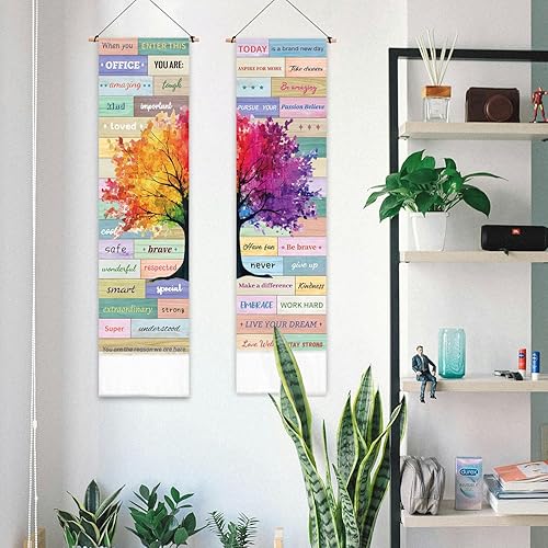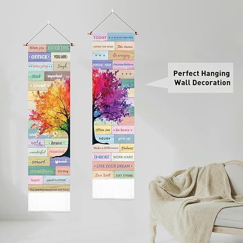 PLIGREAT 2 Pack Tapisserie d’arbre coloré avec glands, citations inspirantes Esthétique Tenture murale Tapisserie d’art verticale pour chambre à coucher Salon Salle de bain Long Étroit Art Décor
