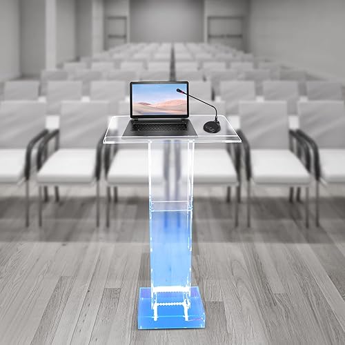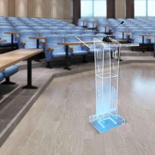 GAOUSD Lucite Podium en Acrylique Transparent Chaire D'église Podium Transparent Table de Conférence Podium en Acrylique avec Lumière LED Bleue,Convient pour église, école, Ambassade, Scène