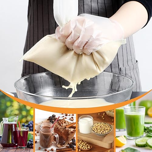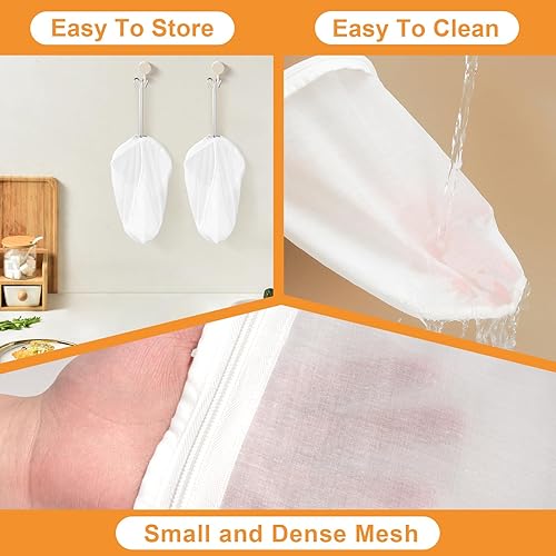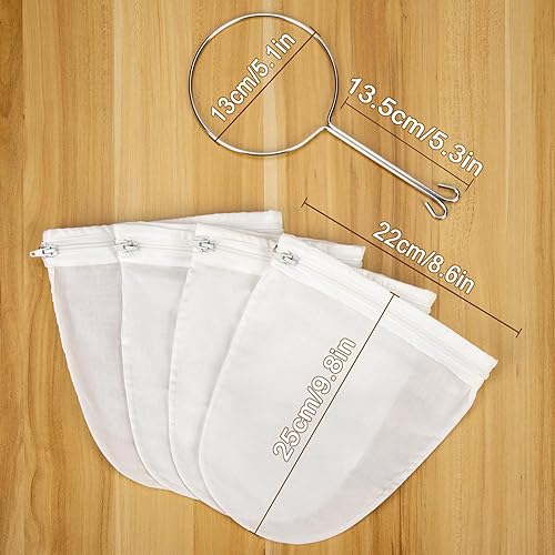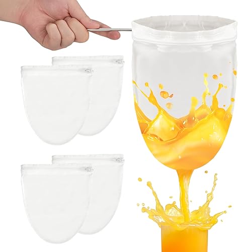 Yesaler Sac de Filtre Alimentaire 4 Pièces Sac Filtrant en Mailles Réutilisable Blanc avec 1 Anneau en Acier Inoxydable pour Lait de Noix Jus de Fruits