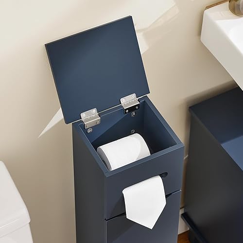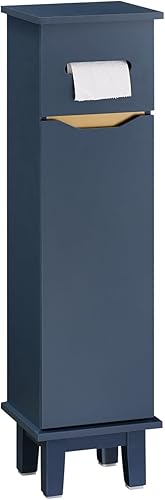SoBuy Porte Papier Toilette étroit, Meuble WC, Support Papier Toilette, Armoire Toilettes, 1 Porte, 22 x 20 x 81 cm, Bleu, BZR192-B