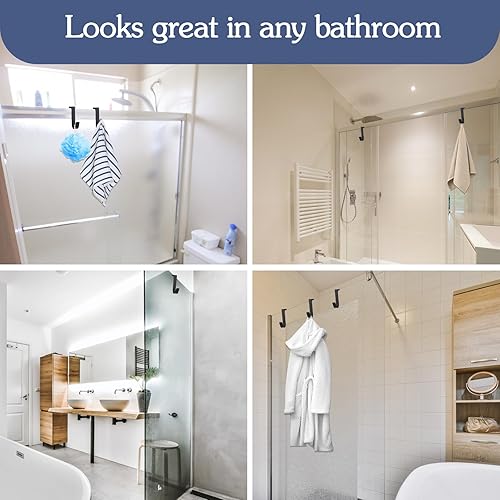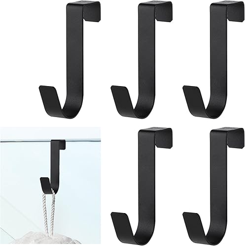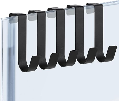 COMNICO Lot de 5 crochets de porte de douche, crochets de serviette sur porte en verre sans cadre de 2,1 cm, crochets robustes en acier inoxydable pour accrocher peignoirs, vêtements, brosse noire