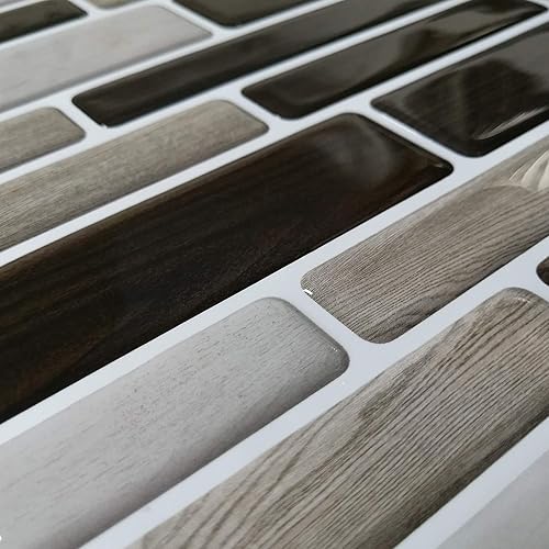 Profesticker Carrelage Adhesif Mural Autocollant Carreau Ciment 3D Sticker Mural Auto-Adhésif Credence Adhesive Frontière Imperméable Cuisine Salle de Bain (Grain de Bois, 9)