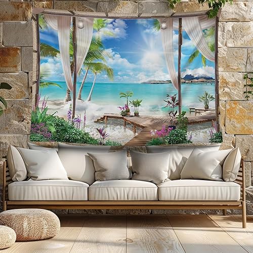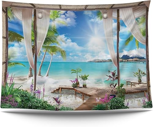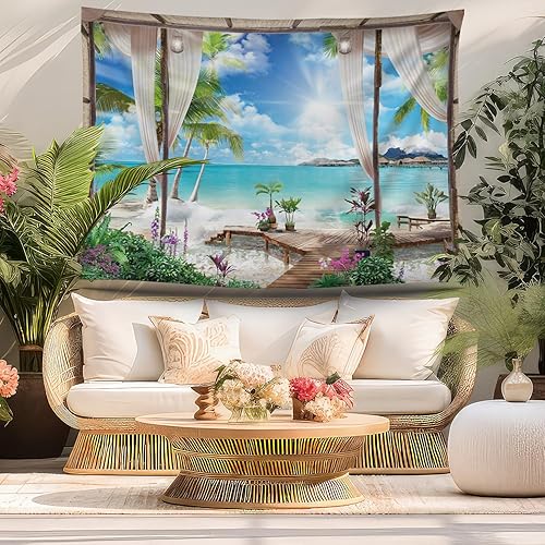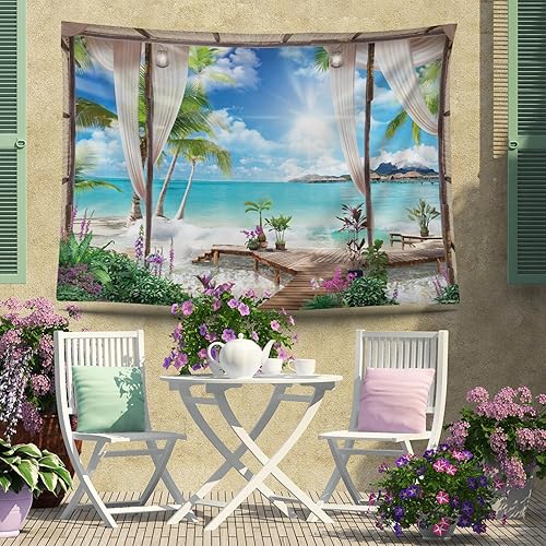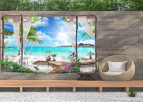 Ulticool Poster mural - Vue sur la plage - 200 x 150 cm - Poster de jardin - Grande tapisserie - Accessoire de décoration pour jardin et salon