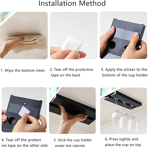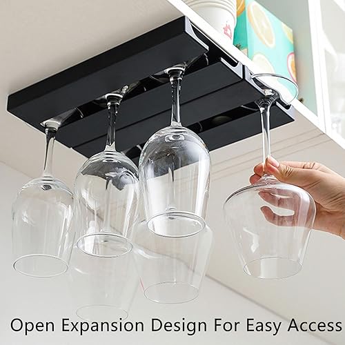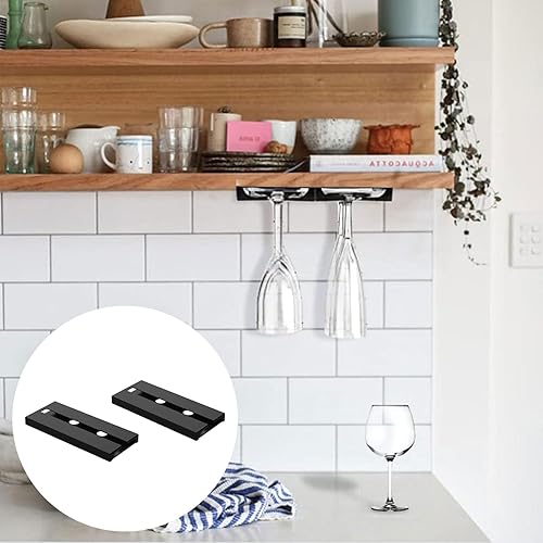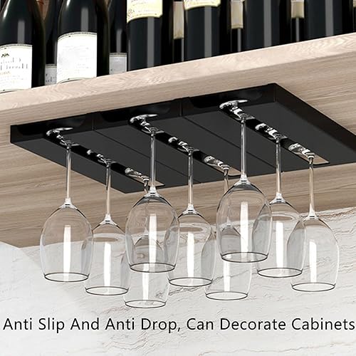 Support à Verre à Vin Suspendu, 2 Pièces Support à Verre à Vin, Support Verre à Vin Sous Meuble, Porte-Verres Suspendu, Peut Contenir 5-6 Verres à Vin, Sans Trou, Pour Cuisine, Bar, Pub (Noir)