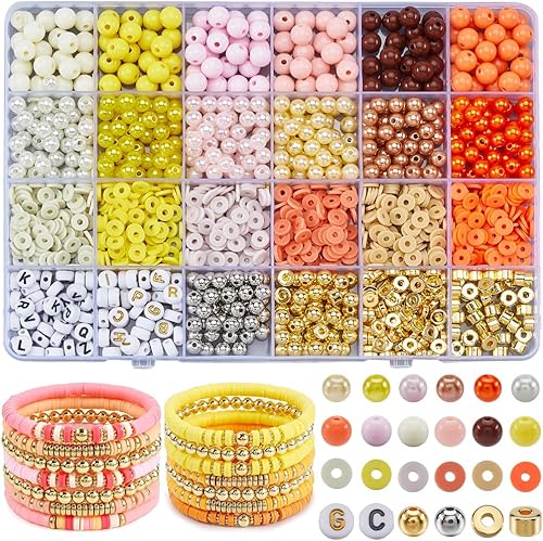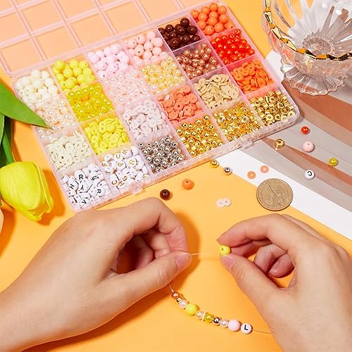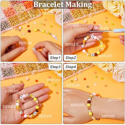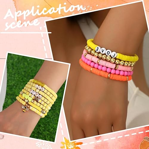 SOFPLATE 1 boîte de 2220 pièces de Kit de Fabrication de Bracelets en Perles D'Argile Kit de Bracelet D'Amitié Perles en Plastique Perles Plates Rondes en Argile Heishi Perles D'Espacement avec Lettre