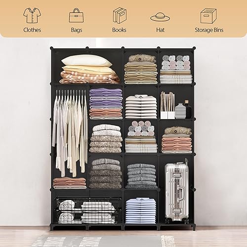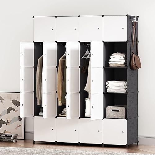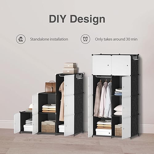 JOISCOPE Armoire,Penderie Vetement,Étagères de Rangement,Armoire Modulable pour Chambre,en Plastique,Grande capacité,Noir et Blanc,10 Cube