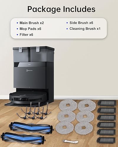 20 Pièces Accessoires pour Ecovacs Deebot X5 / X5 Pro Omni, Pièces de Rechange 1 Brosse Principale, 4 Serpillières, 6 Sacs à Poussière, 4 Filtres HEPA, 4 Brosses Latérales,1 Brosse de Nettoyage