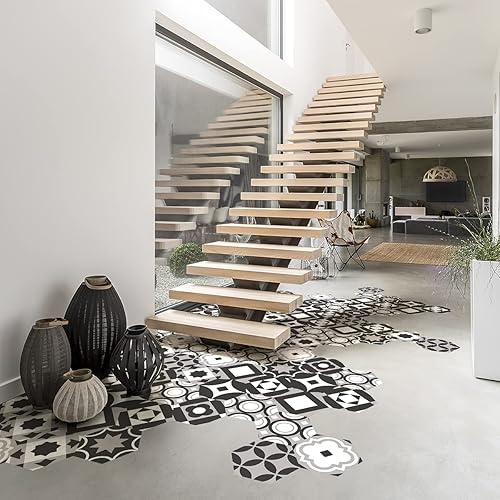Ambiance Sticker Carreaux de Ciment pour Sol - Azulejos avec Laminat Protection en Plastique Anti-Dérapant | Stickers Adhésifs Carrelages Hexagones Suziana Résistant à l'eau - 10 Pièces de 20x18 cm