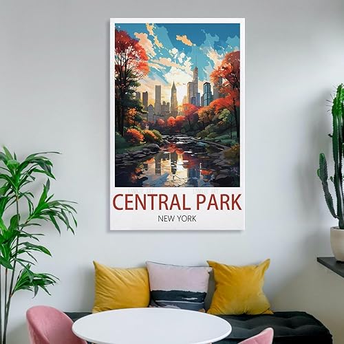 UnNiQ Central Park New York Poster de voyage vintage sur toile Décoration murale pour salon, chambre à coucher 20 x 30 cm