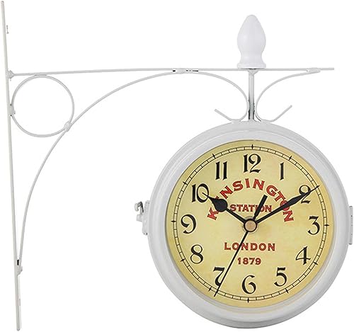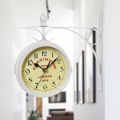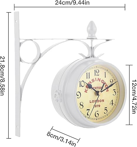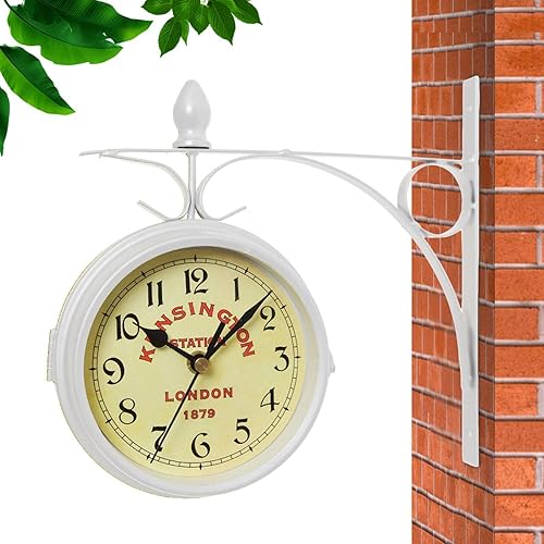 Supatmul Gare Double Face - Gare Rétro - Horloge Murale Double Face - Horloge Murale en Fer Aspect Antique Européen pour L’intérieur et L’extérieur Maison Jardin Cuisine Cour 21.8X24CM