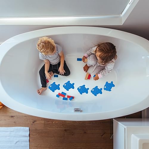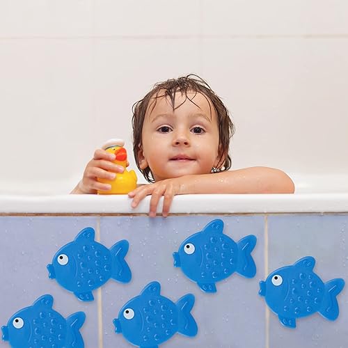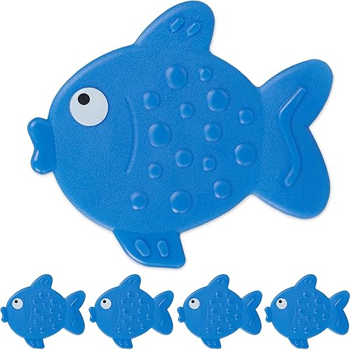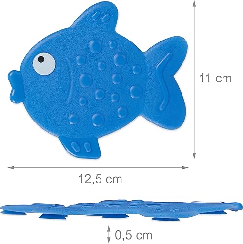 Relaxdays Autocollants de Salle de Bain antidérapant, Lot de 5, Design Poissons, avec ventouses, Enfants, Bleu, Plastique