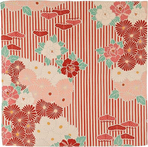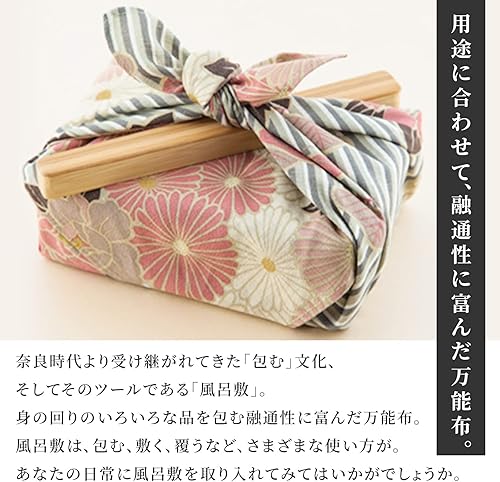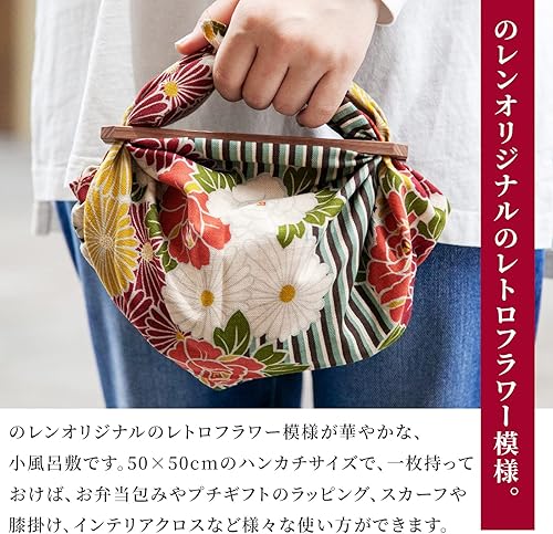 NOREN Furoshiki Petit tissu d'emballage 50 cm (fleur bleue rétro), fabriqué au Japon, 100 % coton, sac à bento japonais, bandana japonais