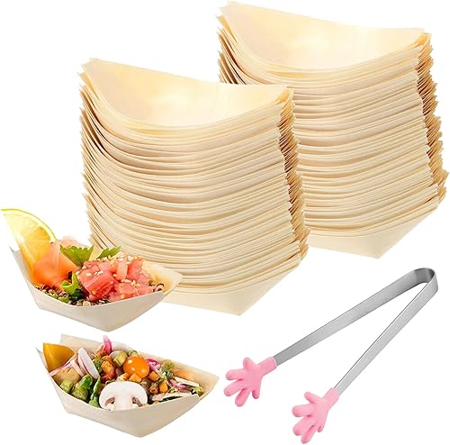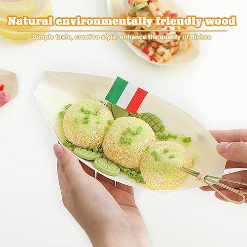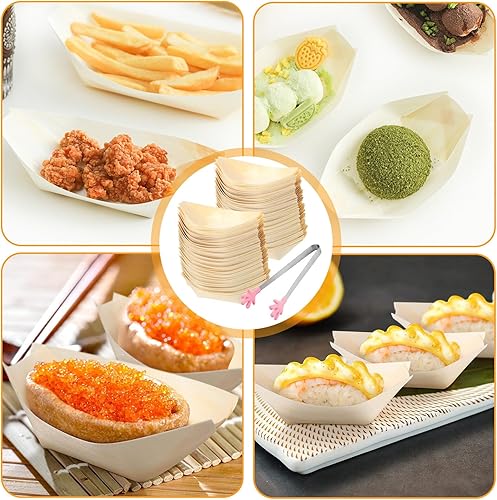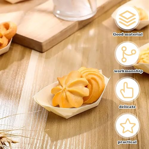 WANDGU 200 pièces de barquettes apéritives : Barquettes à finger food 8,5 x 6 cm, barquettes en bois de pin, barquette biodégradable en bambou, barquette pour saucisses frites sushis