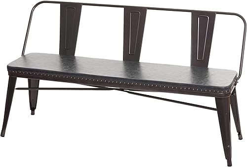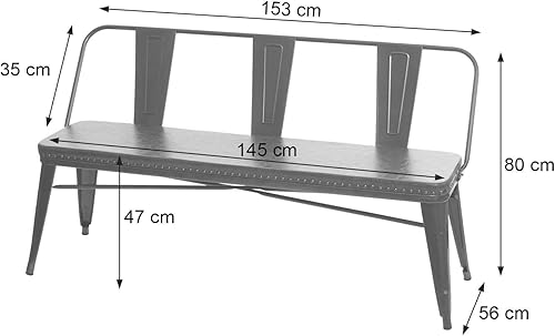 Mendler Banc à 3 Places, HWC-H10, pour Salle à Manger,Design Chesterfield, Industriel,gastronomie,Similicuir-Noir-Gris