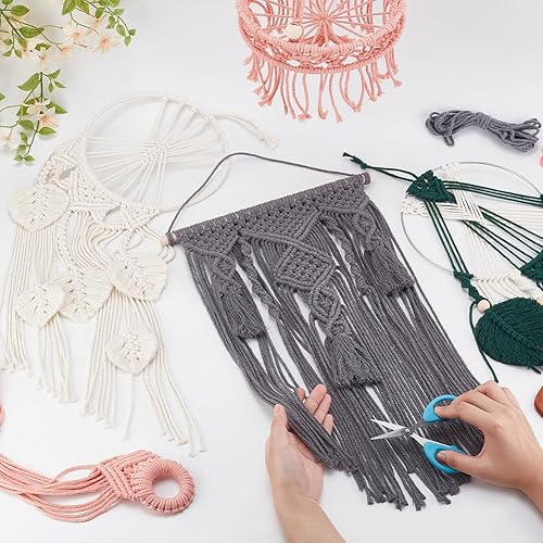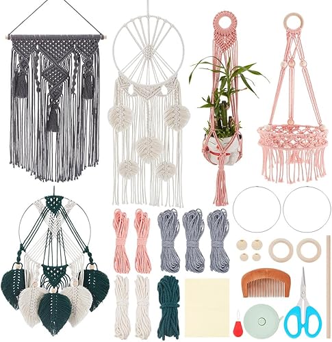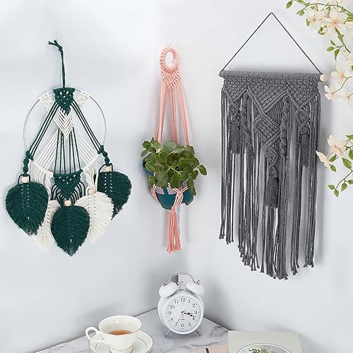 IFNUNLY Lot de 5 tapisseries en macramé pour adultes - Décoration murale en macramé fait à la main - Kit de suspension de plantes en macramé bohème - Kit de fabrication de panier de fleurs en macramé