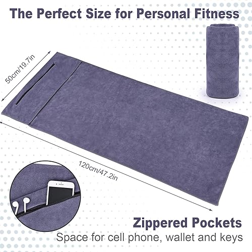 Gaethra Serviette de fitness 120 x 50 cm, serviette de sport avec poche zippée, serviette de sport absorbante en microfibre pour salle de gym, entraînement, extérieur