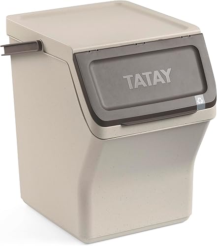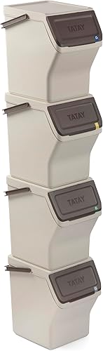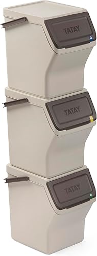 TATAY Poubelles de Recyclage Easy Waste 20L | Set de 3 | Design Modulaire et Empilable | Couvercle à Système Click | Poignée de Transport Intégrée | Fabriqué en Matériau Recyclé | 35x27x36cm - Ecohome