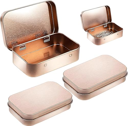 AONAYO Lot de 3 petites boîtes en métal or rose - Petite boîte en métal avec couvercle - Pour bonbons, clés, boucles d'oreilles, savon, menthe, biscuits (or rose)