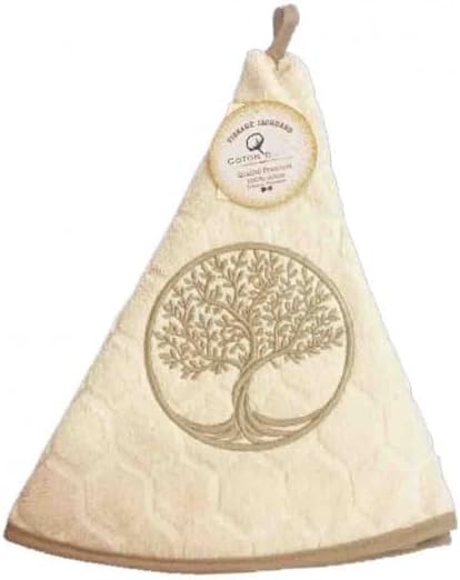 Générique Essuie Main Rond en éponge Tissage Jacquard Arbre de Vie écru Qualité Premium