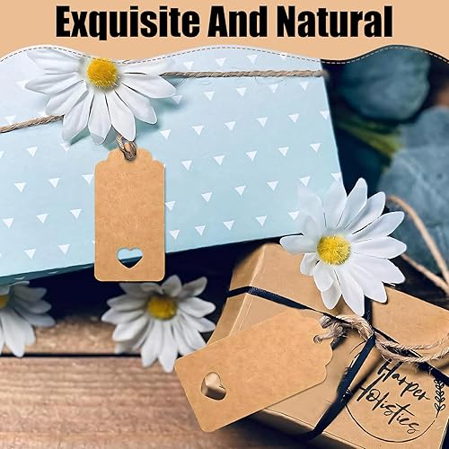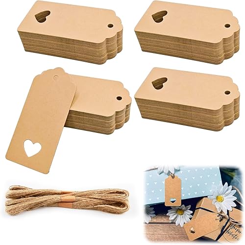 Lot de 100 étiquettes en papier kraft avec 40 m de ficelle de jute, étiquettes cadeaux, faites à la main, étiquettes en papier kraft pour Saint-Valentin, cadeaux de mariage (marron, 4,5 x 9,5 cm)