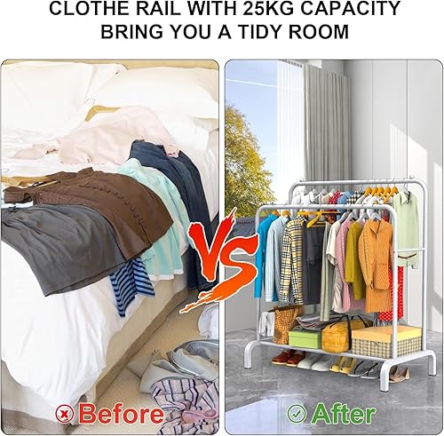 LOEFME portant a vetement Autonome à Double Rail Multifonctionnel Pour Chambre à Coucher, portant vetement En Métal Au Design Minimaliste, Portant Vetement Solide (Noir)