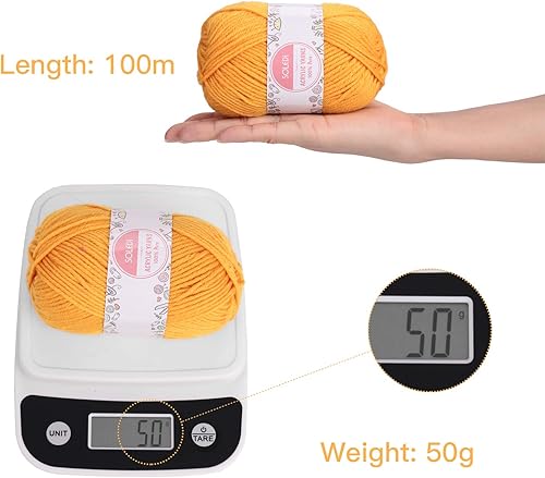 SOLEDI Pelotes de Laine en Acrylique, Kit de Fil Acrylique Hyper Doux pour Tissage à La Main Avec 2 Crochets et Sac de Rangement Réutilisable (50 g * 12 Couleurs)