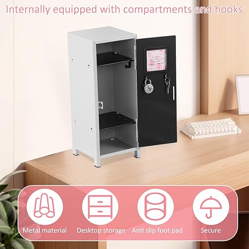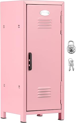 BAODBF Mini armoire de rangement portable avec serrure et clé en métal inoxydable - Petit casier de rangement pratique avec compartiments pour bureau - Pour filles et garçons (rose)