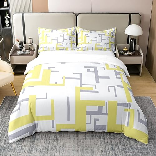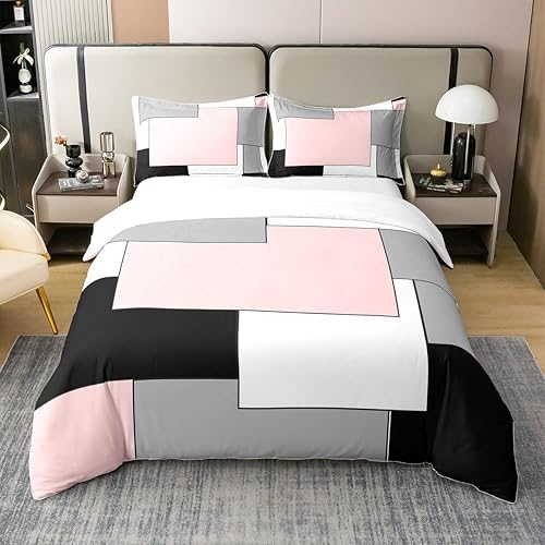 Homemissing Bleu Marine Géométrique 100% Coton Housse de Couette 140x200cm Moderne carré Parure de Lit Femmes Noir Gris Blanc Literie Set Géométrique Ensemble de lit avec 1 taie d'oreiller