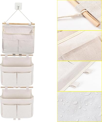 Tucireat 3 Pièces Sac de Rangement Suspendu Imperméable avec 3 Crochets, Organisateur Mural pour Chambre, Salle de Bain, Bureau (Blanc)