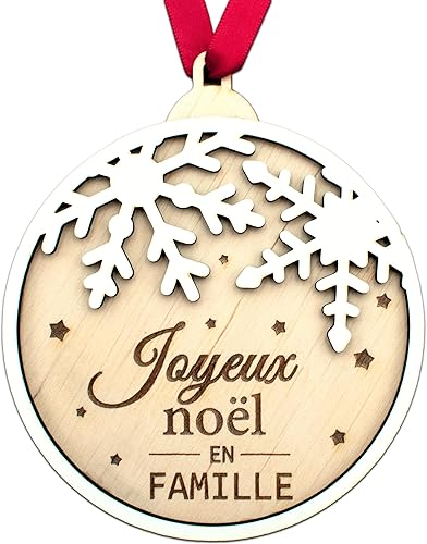 ERNESTINE - Boule de Noël personnalisée Famille en bois - Décoration cadeau sapin Personnalisable bois - Boules personnalisées gravées au laser - Idée cadeau unique pour noël - cadeau homme femme noël