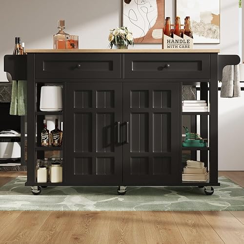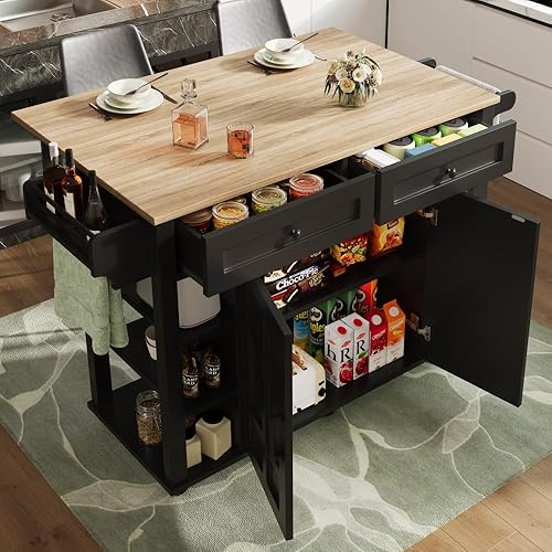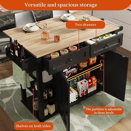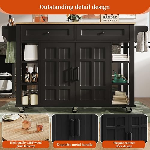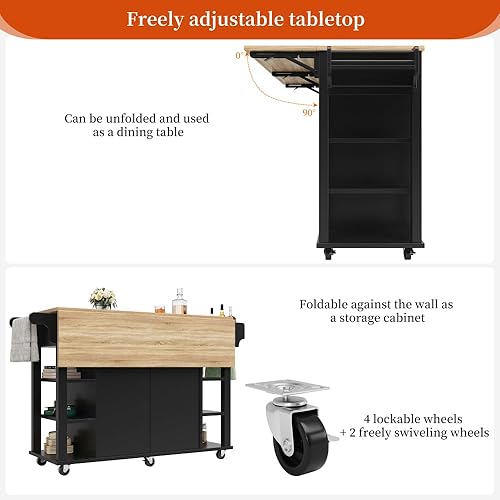Zubaliya Desserte, îlot de Cuisine avec cloisons Amovibles, desserte avec Plan de Travail, Plateau en veinage Bois, Porte-Serviettes des Deux côtés avec roulettes, Noir