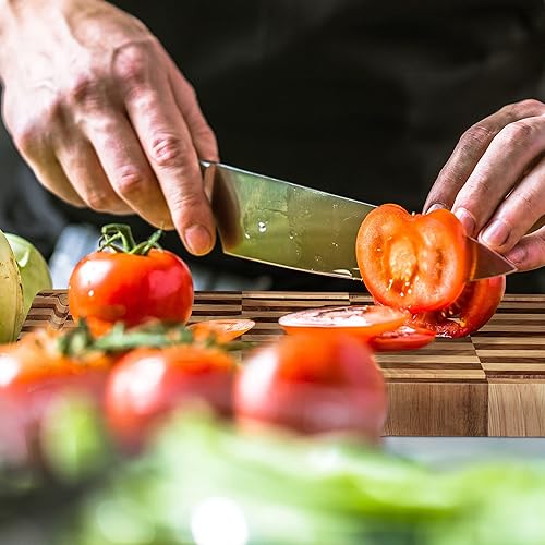 Relaxdays Planche à découper en Bois Massif, Acacia, ménage Vos Lames, avec récupérateur de jus, 40x30cm, Marron