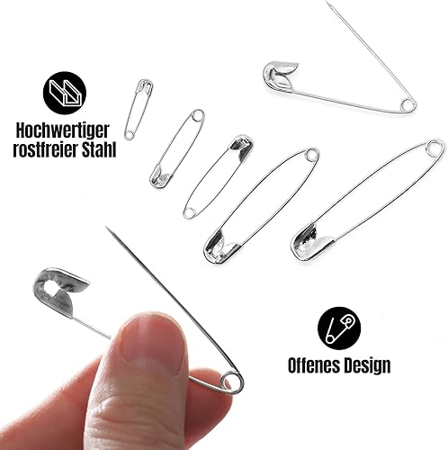 Lot de 450 épingles à nourrice argentées, 5 tailles 19 à 54 mm, en acier inoxydable, grandes et petites, pour vêtements, couture, travaux manuels, projets de bricolage (19, 28, 32, 45, 54 mm)