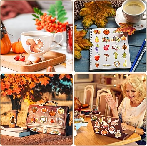 Elfinfi 200 Pièces Gommettes Feuilles d'automne, Gommettes Autocollantes Livré avec Feuilles d'automne Animal Citrouille, Gommette Feuille Automne Approprié Décoration de Thanksgiving