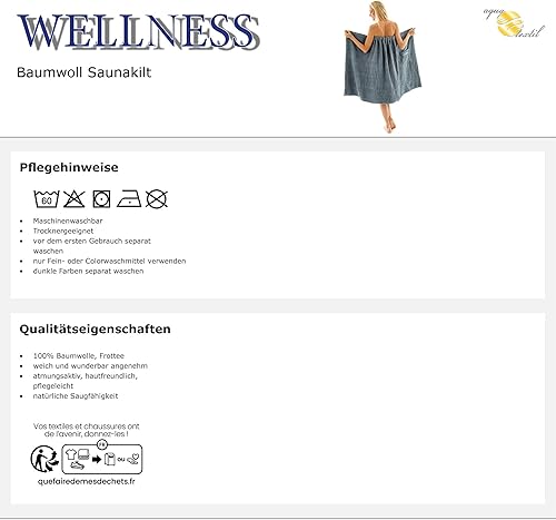 aqua-textil Wellness Jupe de Sauna 90 x 150 cm Mixte en Coton éponge Gris